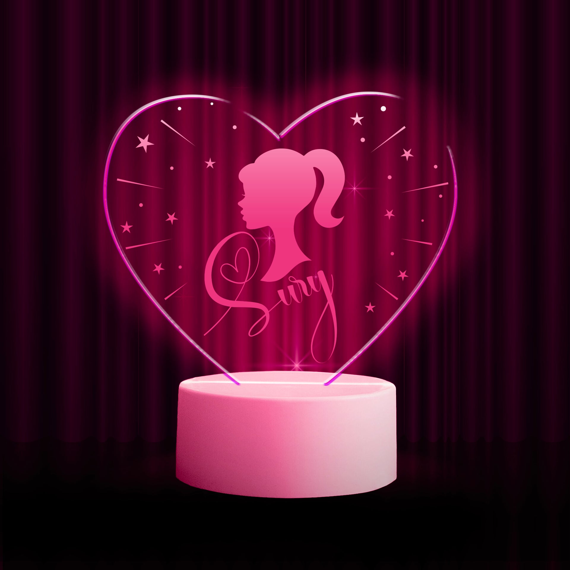 Barbie Doll in a Heart Shaped Acrylic LED nightlight